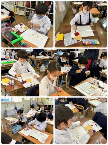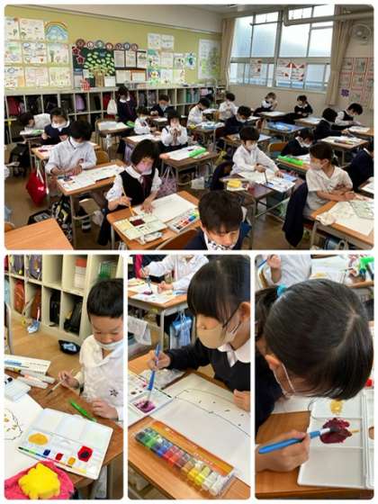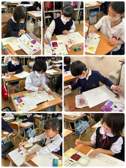 先日収穫した、さつまいもの絵を描いています。色を作るところから、しっかり見て取り組んでいます。