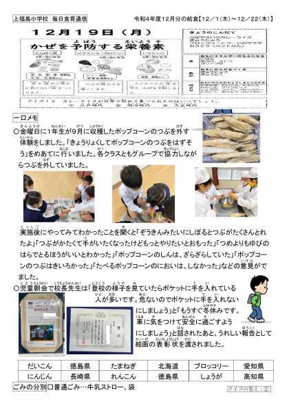 児童朝会で校長先生は「登校時ポケットに手を入れないで歩きましょう」と話されました。