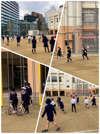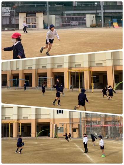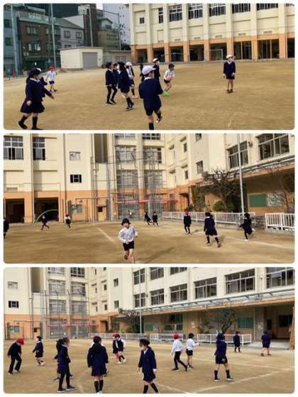 久しぶりにあったクラスメイトと、楽しく運動場で元気に遊びました。寒さに負けず、素晴らしい!