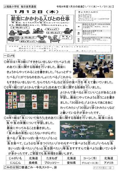 昨日1年3組、2年1組、4年1組に食に関する指導を行いました。