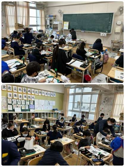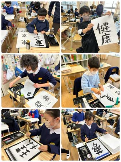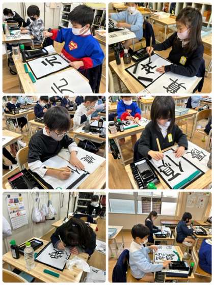 書写の時間です。新年最初という事で、それぞれの目標などを書きました。
