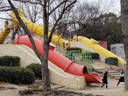 キッズプラザの見学が終わった後は、キッズプラザの前にある扇町公園で、遊んでいます。