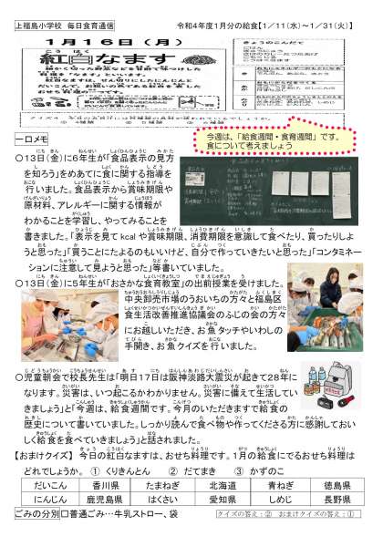 児童朝会で校長先生は「災害に備えましょう。感謝して給食を食べましょう」と話されました。