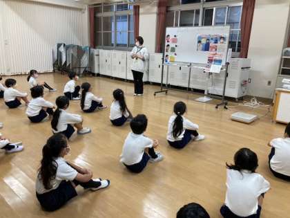 今日、1年生は発育測定がありました。その時に保健指導として、病気を予防するための学習をしました。
