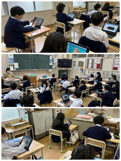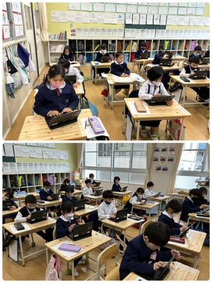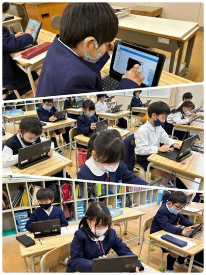 1年生は、新しいタブレットを用いて絵を描いています。使い心地はどうかな?