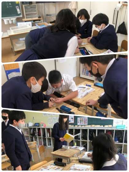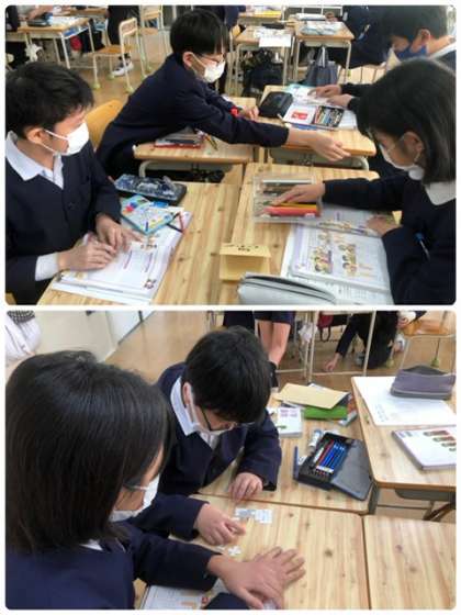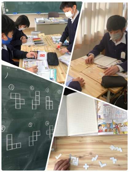 算数科の学習で、テトリスです。とても楽しそうに、互いに考えながら学習しています。