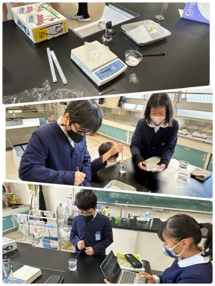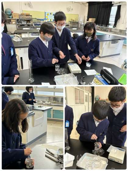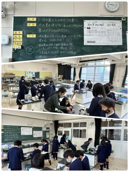 理科の学習です。今日も、水に食塩とミョウバンがどれだけ溶けるか実験をしていました。水の量が増えると…