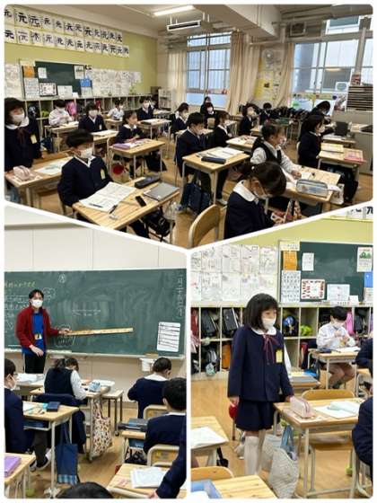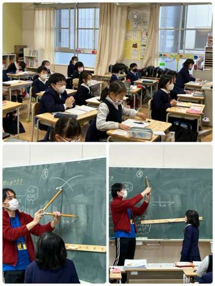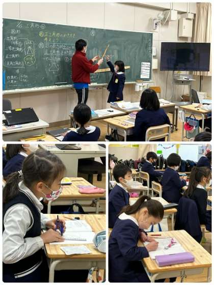 算数科で、コンパスを使い正三角形を描いていました。なかなか難しいのですが、みんな上手に作図していました。