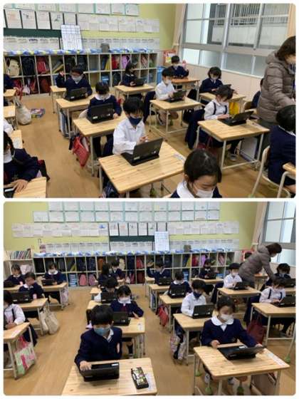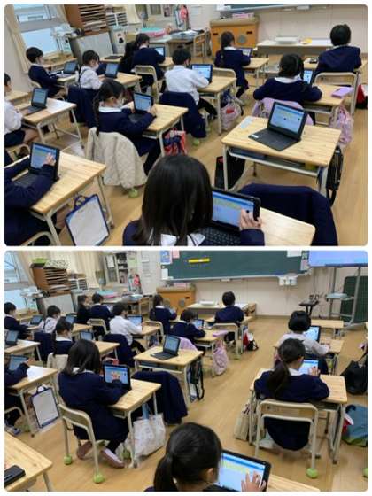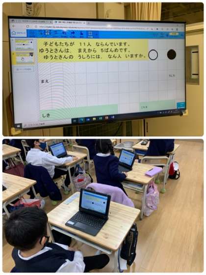タブレットを操作して、算数の問題を考えています。これからの学習スタイルですね!