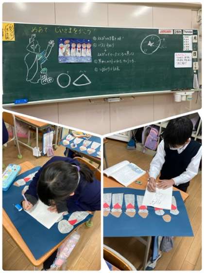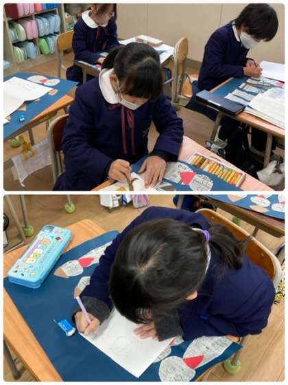 国語科で、学習している「かさこじぞう」を作っています。だんだんと完成に近づいてきました。