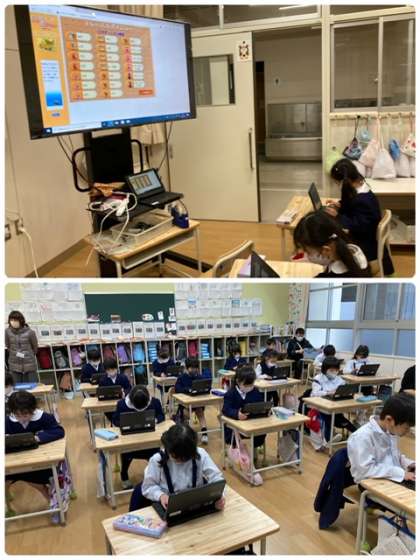 こちらはタブレットを使ってキーボードレッスンをしています。