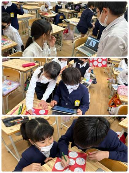 卒業していく6年生へのメッセージカードを仕上げました!他学年から集まったメッセージカードに絵を描き入れてより華やかにします。