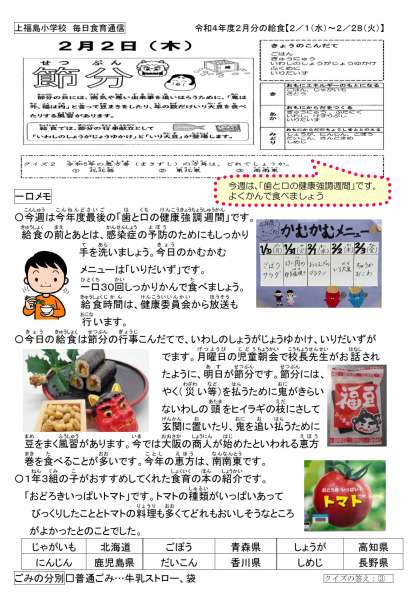 今日の給食は、節分の行事献立でした。