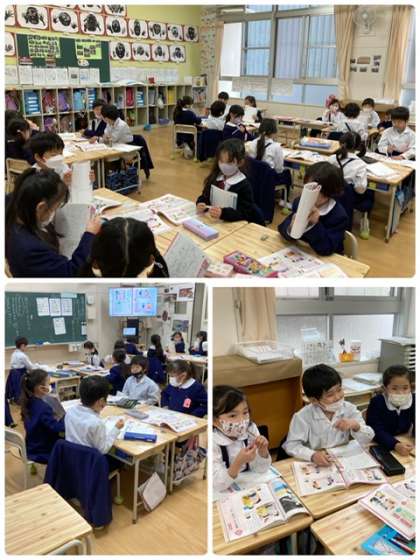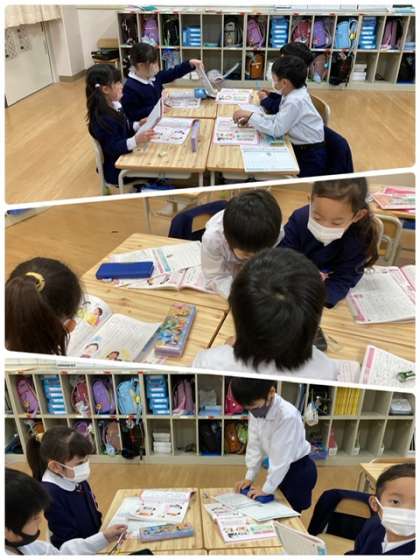 道徳科で、自分のよさについて考え友達の良いところを班で発表しました。ちゃんと話し合いができている1年生!すごい!