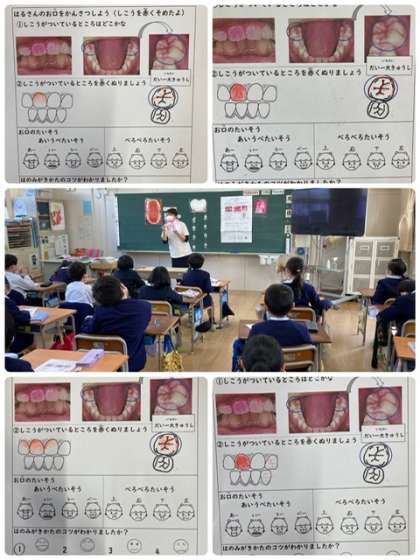今日、2年生は歯科衛生士さんにお越しいただき。歯磨き指導を行いました。いつもよく見ている歯ですが、気をつけないといけないことがいっぱいです。
