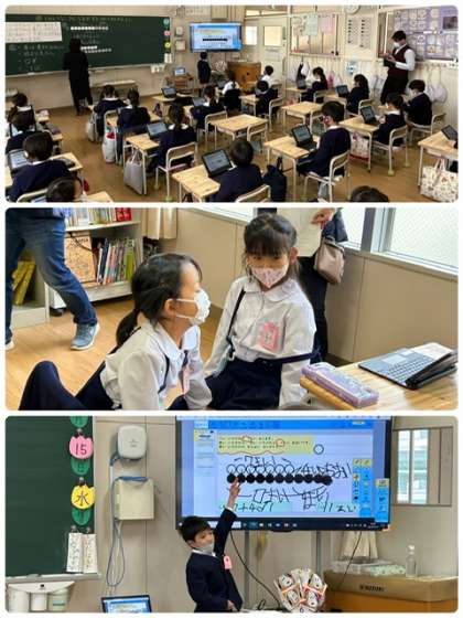 ICTを活用した後は、お互いに考え方を交流し、学習を深めました。