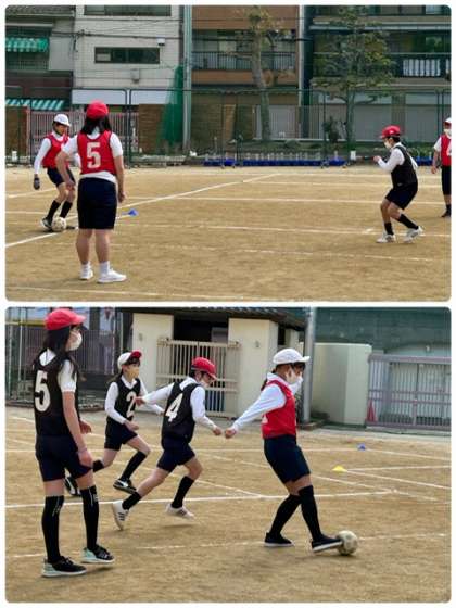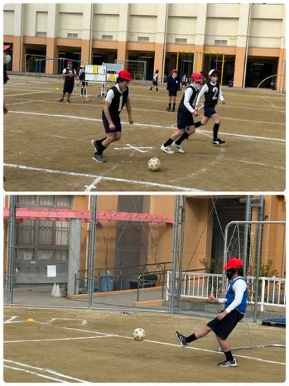 寒さに負けず、運動場で元気にサッカーをしています。