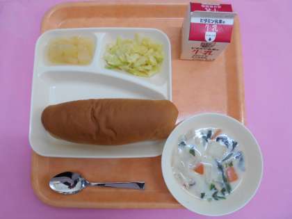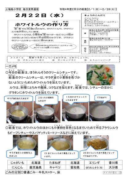 今日の給食のクリームシチューは、手作りのホワイトルウで煮こんでいます。。