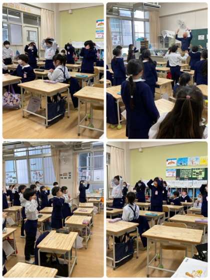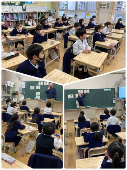 今日は1年生の教室に、外国語のパトリック先生が来てくださいました。1年生と楽しく英語を学習しました。