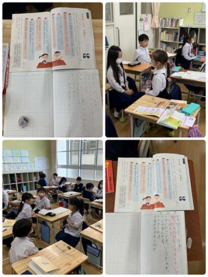 国語科、会話を楽しむ学習です。ペアで好きなことを伝え合い、楽しく話をつなげました。