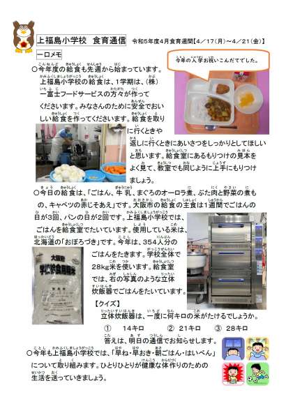 今週は上福島小学校の「食育週間」です。通信を発行します。