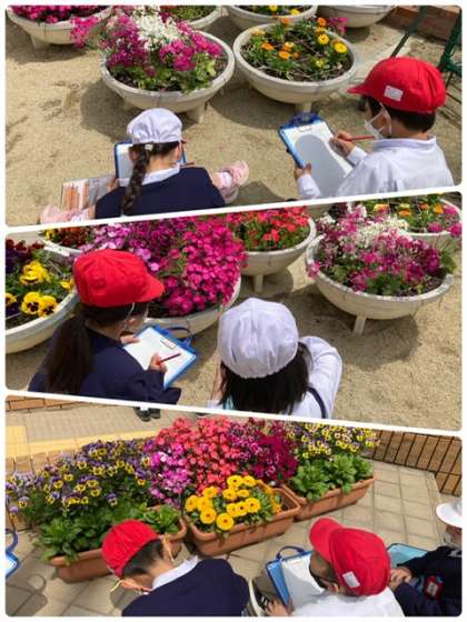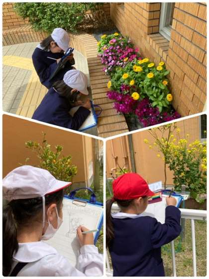 生活科の時間に、校庭に出て春見つけをしました。しっかりスケッチしました。