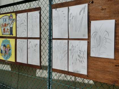 5年生が、たわわに実った稲をスケッチしました。
