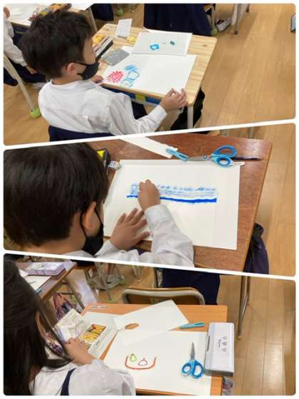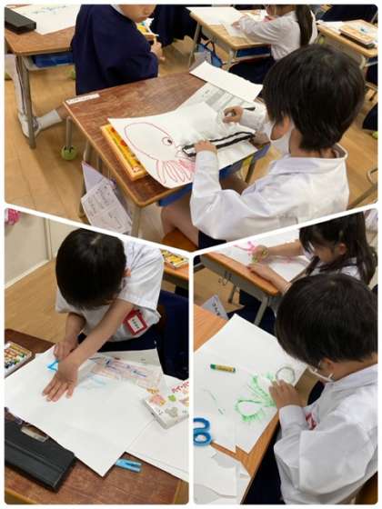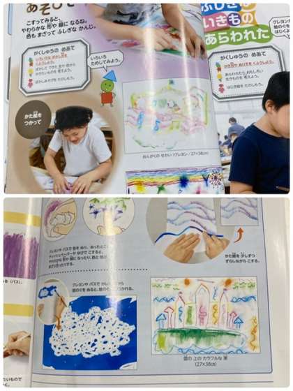 図工科の様子です。クレパスを上手に指で広げたりしていますね。