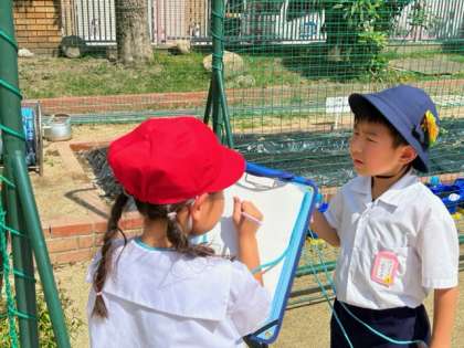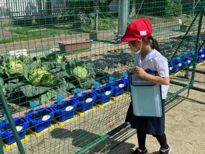 先日、タネを植えた朝顔の観察の様子です。