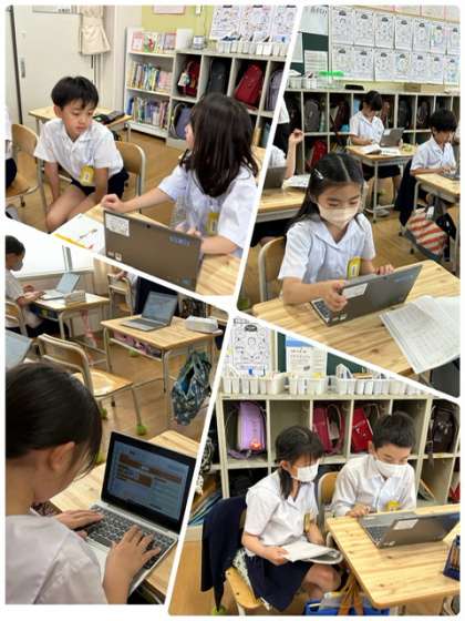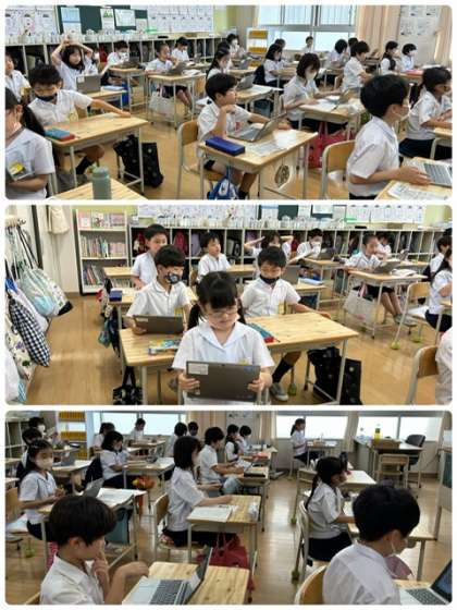 算数科の学習の感想を、タブレットにまとめているようです。