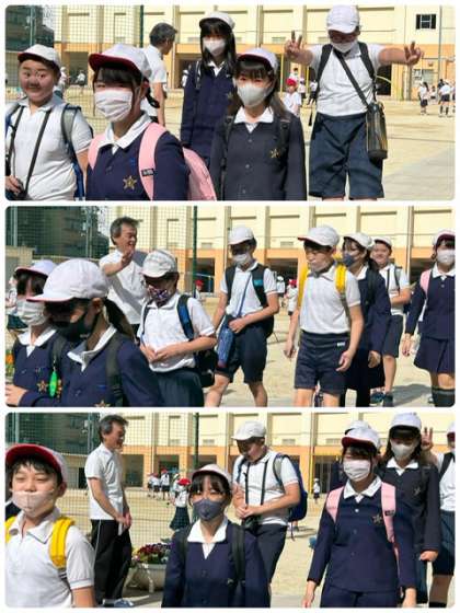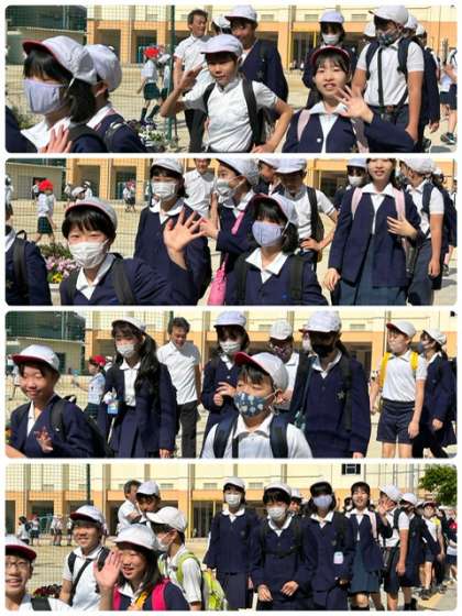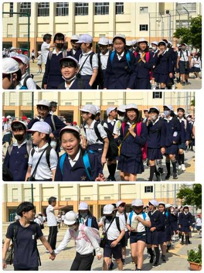 6年生が春の遠足で、大仙公園に向けて出発しました。天気も暑すぎるくらいです。