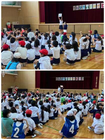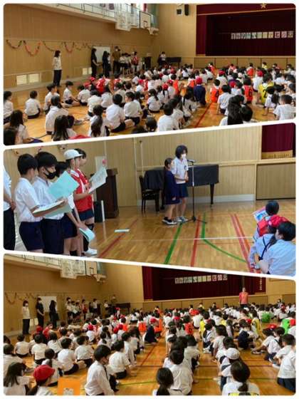 今日の集会は、上福島小学校149歳のお誕生日集会でした。学校に関係するクイズで盛り上がりました。