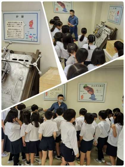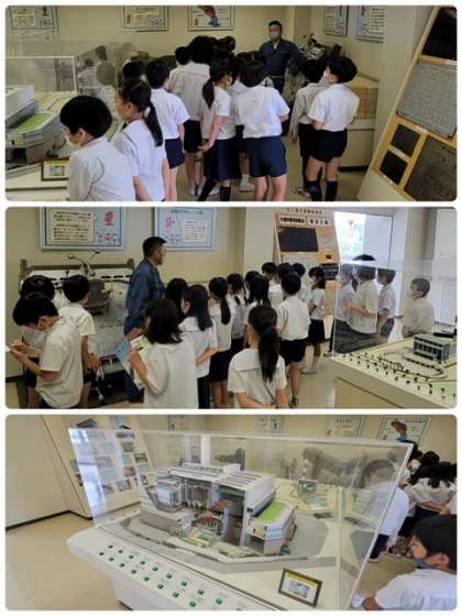 工場内の見学が始まりました。模型や実物大の機械などを見せていただき、感動です。