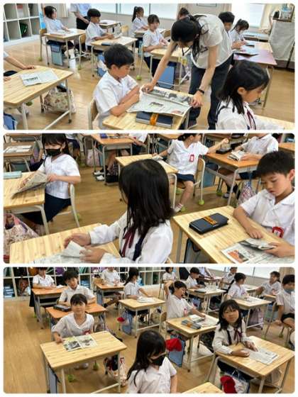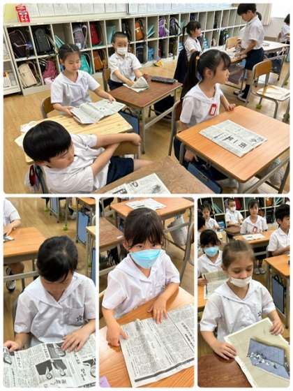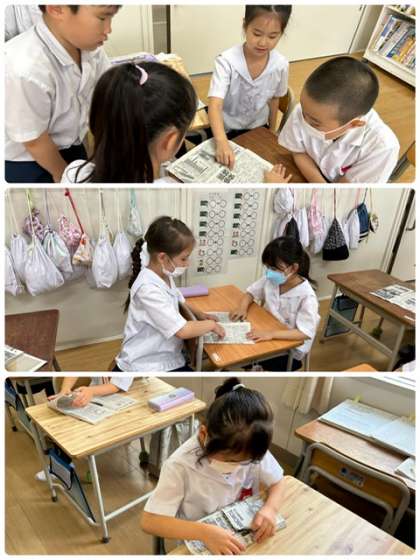 ふれあいまつりに向けて、新聞スリッパを作りました。