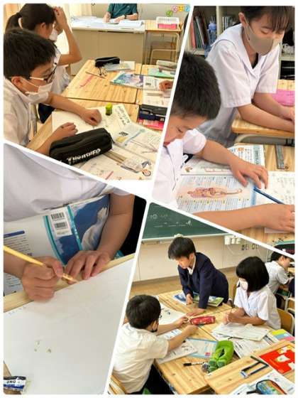 理科でテーマを決めて、調べ学習をしています。絵も上手い。発表が楽しみです。