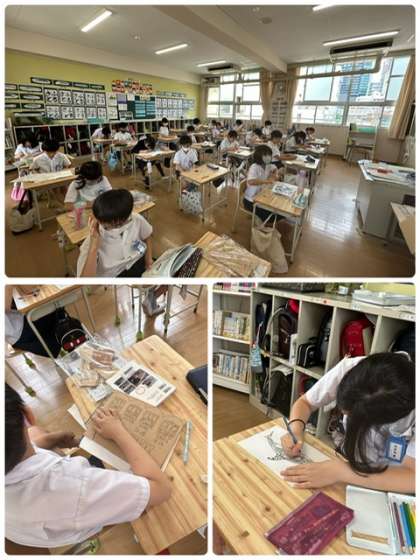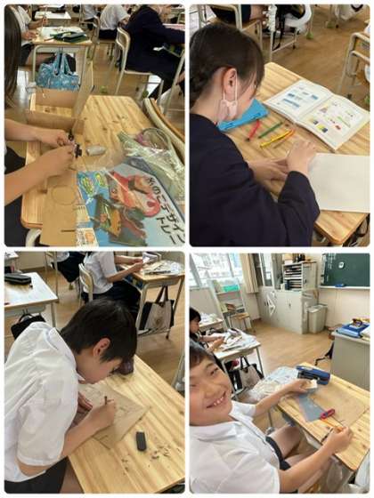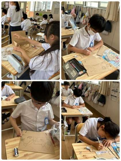 図工科で、木を切って作品を作ります。今日は、下絵を描きました。