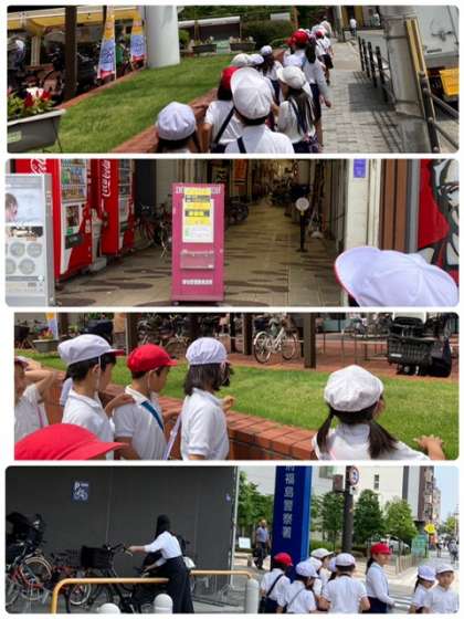 今日は待ちに待った町探検の日でした。天候にも恵まれ、いろいろな場所を回ることができました。
