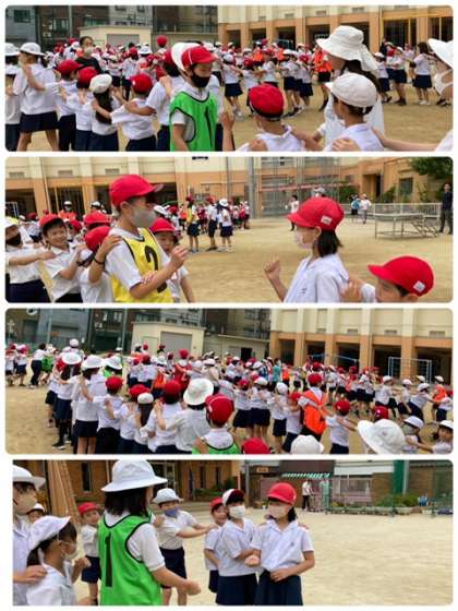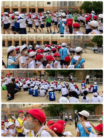 違う学年の人とじゃんけんをして、大きな列車を作りました。楽しく活動できたようです。