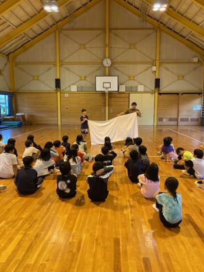 ?カッターを終えた途端雨に降られたようですが、何とかカッターは楽しめたようです。その後、入所式をしました。