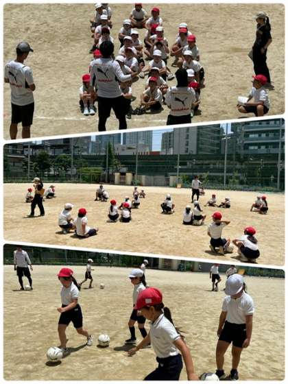 今日は、3年生でセレッソ大阪のコーチ、選手に来ていただきサッカーを教えてもらえるトップアスリート事業がありました。