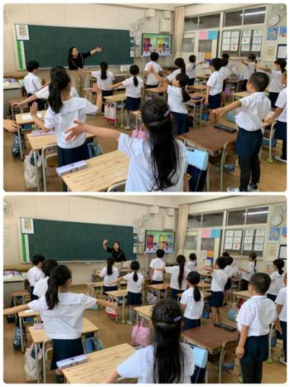 久しぶりの英語タイムがありました。歌にゲームに、楽しみながら英語に触れることができました。