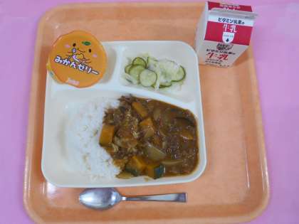 今日の給食は、夏野菜を使った夏野菜のカレーライスです。