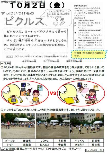 毎日食育通信:運動会に備えて生活習慣を整えましょう。