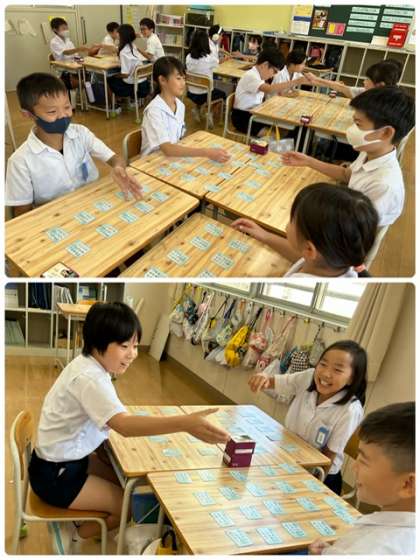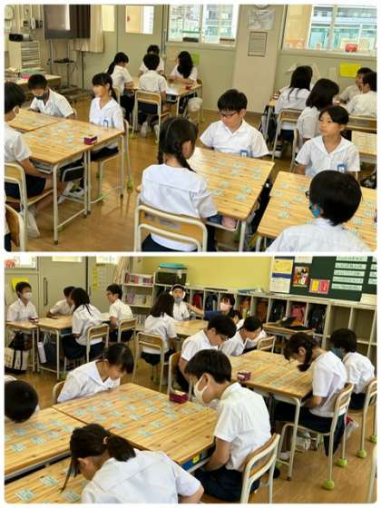 5年生で、百人一首が始まりました。ルールを確認して、早速試合です。