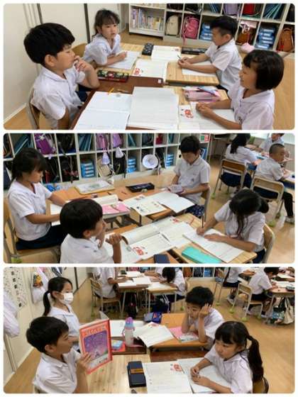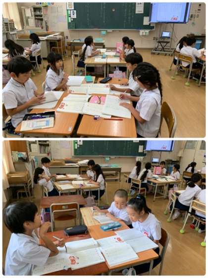 国語科、「うれしくなることば」について、班で話し合う学習です。