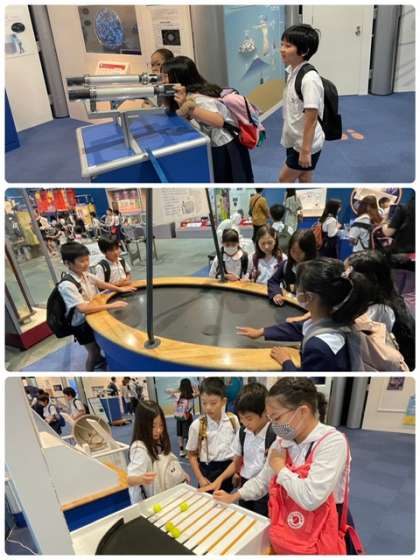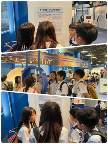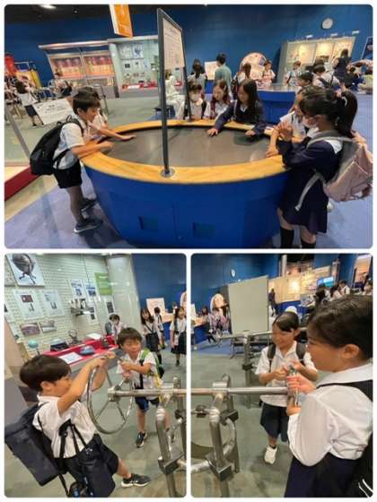 今日は、4年生が大阪市立科学館に見学に行きました。館内で、科学に関する器具で楽しんでいます。