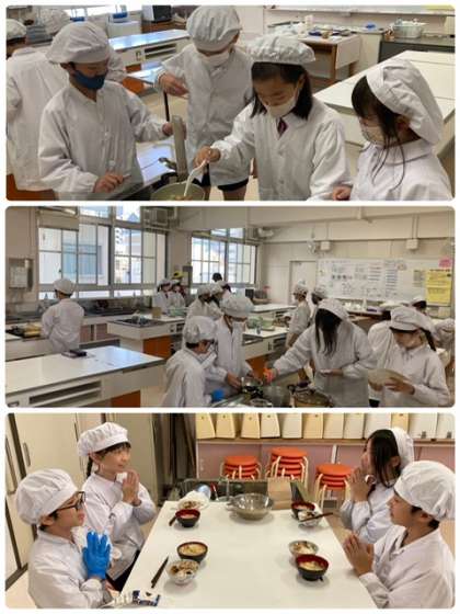 本日は、5年1組が調理実習で、みそ汁とご飯を作りました。手際よく調理できたようです。