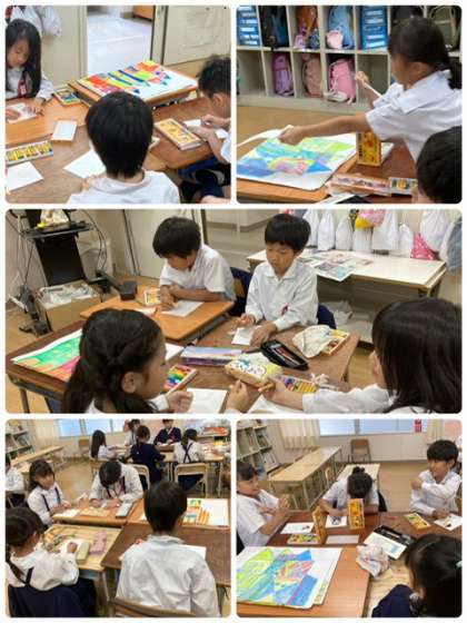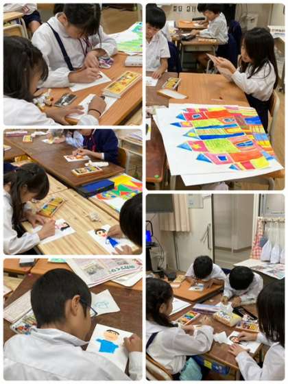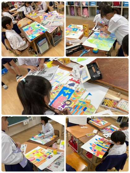 先日描いた、お城の絵を仕上げて、そこに人をかきいれました。