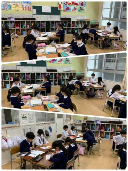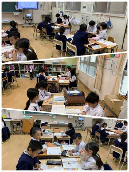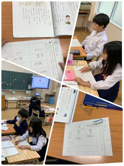 国語科「同じところ ちがうところ」の学習です。班で話し合って、表にまとめています。