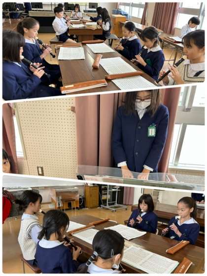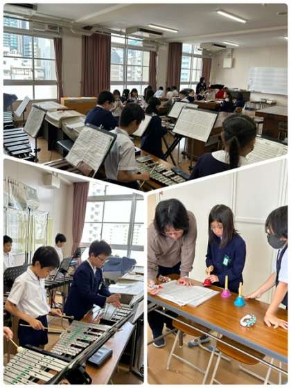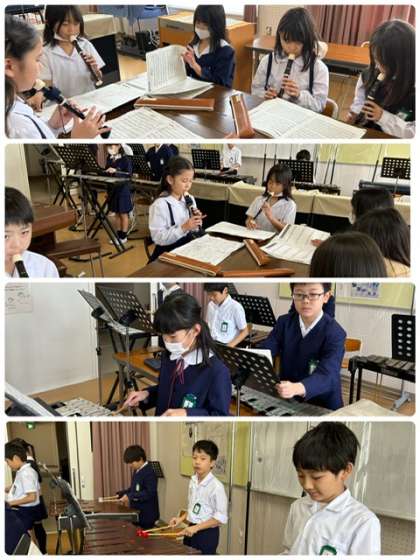 みんなで心を1つに合奏に取り組んでいます。それぞれの楽器に分かれて練習中です。